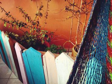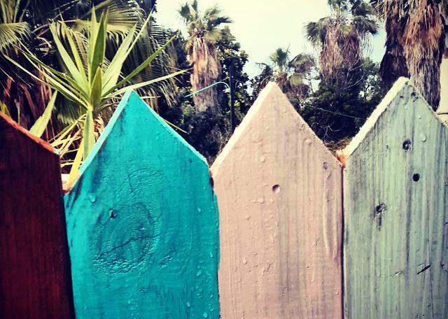 Aztán egy verőfényes napon úgy éreztem, eljött a nagy nap. Elugrottam a közeli festékboltba, eredetileg azzal a tervvel, hogy sima fehér színre kenem le a palánkokat, megérkezvén az üzletbe azonban azzal szembesültem, hogy a mahagóni is csinos megoldás lehetne, sőt a türkizkék, meg a babarózsaszín is... És mikor már épp győzködni kezdtem magam, hogy egy felnőtt férfinak nem lehet pasztellszínű kerítése, eszembe ötlött: két darab, bármikor pótolható raklapról beszélünk, amikkel márpedig azt csinálok, amit akarok. Feltankoltam hát minden olyan színnel, ami kicsit is megmozgatta a fantáziámat, vettem még smirglit – azaz csiszolóvásznat, és hazaérve neki is estem a nagy műnek.