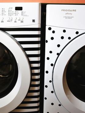 A mosógépek, hűtők baromi unalmasan bírnak kinézni. Erre a problémára keresett megoldást a Beautiful Mess, melynek szerzője hosszú kísérletezés után bukkant a szigetelőszalagra, mint megfelelő eszközre. A mosógép csíkozásához 2 tekercset használt el, a pöttyöket pedig egyenként kivagdosták.