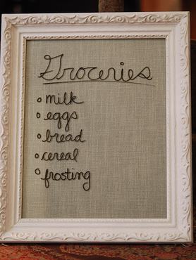 Megint egy csodás ötlet, melyet a Jill Ruth & Co. valósított meg. Mindössze egy képkeret, valamilyen anyag és egy üveglap kell hozzá, na meg egy olyan toll, amit utána le lehet törölni ( dry erase marker néven kapható). Üveget bármelyik üvegesnél vágathat, de akár egy százforintos boltban is vehet egy képkeretet, amit úgy dekorálhat, ahogy szeretne.