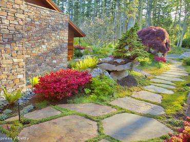 A lépőkövekkel megoldott kerti utak a legegyszerűbbek, hiszen nem kell hozzájuk más, csupán olyan, nagyobb kőlapok, melyek felülete sima, és időtálló. Ezek lehetnek betonlapok, járólapok, de akár fa hatású, vagy fa tipegők is” – mondja Ónozó Krisztián, az Evergreengarden.hu kertészmérnöke.