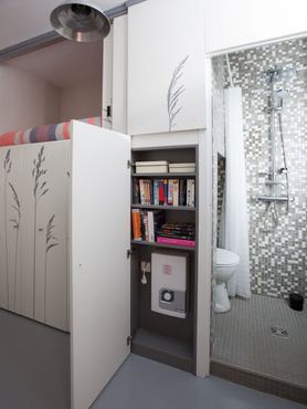 A párizsi cellában egy háló, egy gardrób, egy étkező és egy zuhanyzó is helyet kapott. Mutatjuk a trükköt!