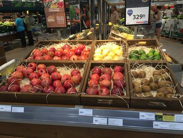Aki eddig csak azért nem vett különleges gyümölcsöket, mert nem volt a Tescóban, az most hátradőlhet. Csillaggyümölcs, mézdinnye, kumquat és physalis is van a Váci úton, és szépen mellé is írták, hogy nagyjából hogyan kell felhasználni őket. Az igazán gondos háziasszonyok pedig kókuszdiót vehetnek, hogy saját reszelésű kókuszreszelék kerüljön a vasárnapi sütibe. Az egy kicsit fájt, hogy az pepito sokkal frissebb volt, mint a csöves kukorica vagy a retek, de hát így jár az, aki hagyományos zöldség-gyümölcs részlegben gondolkozik.