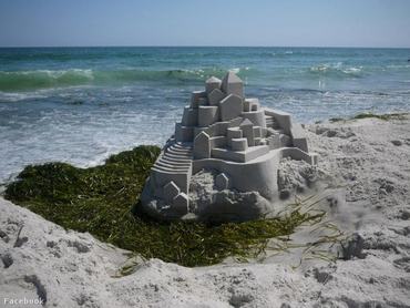 A New York-i művész eredetileg építésznek tanult, de inkább modernista épületeket formáz homokból, miközben folyamatosan szemmel tartja a gyerekeket és a sirályokat.