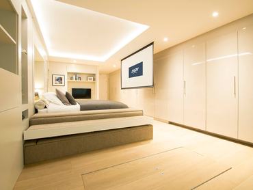 Woodroffe és csapata többek között azzal spórol helyet, hogy az étkezőasztalt bele lehet süllyeszteni a padlóba, a konyha nem egy külön helyiség, hanem csak egy fal, amit könnyű eltüntetni, a nappaliból pedig azonnal hálószoba lesz, ha az óriási ülőgarnitúrára leeresztjük a plafonról a dizájnos álmennyezetnek álcázott franciaágyat. Az utóbbi átalakulás természetesen kis motorok segítségével történik, de akkor is le tud feküdni aludni, ha este hirtelen áramszünet volna, ugyanis a szerkezet kézi erővel is könnyedén működtethető - írja mymodernmet.com.