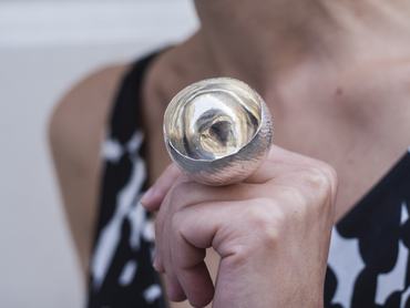 Van, amikor az ékszer maga mesél. Nekem vannak állatfigurás gyűrűjeim, ahhoz nem kell történet, mert valaki ránéz, és látja benne, hogy ez egy kismadár, egy nyuszi, vagy egy macska. Ott önmagában a tárgyban benne van a történet. Én alapvetően jobban szeretem, ha a tárgyban benne van a történet, ha nem kell beszélni hozzá, hanem maga elmondja. Néha az is van, hogy olyan figura, amire mindenki mást mond, és mást lát benne. Van aki baglyot, van aki macskát, és mindenkire ráhagyom, mert mindenki az önmaga mitológiáját teremti meg hozzá. Münchenben láttam olyat, hogy egy vékony fadarab volt egy madzagon és hosszú történet volt hozzá. Akkor azt gondoltam, inkább a történet volt eladva, mint az ékszer. Ilyen módon a kortárs ékszer sokszor súrolja a képzőművészet határát, nehéz első ránézésre ékszerként definiálni egyes darabokat.