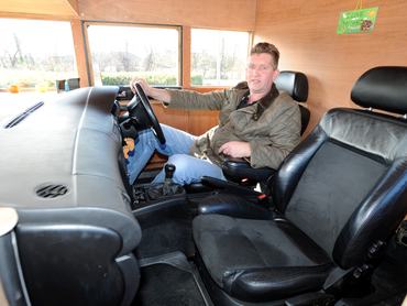 Kevin Nicks a Londontól északkeletre lévő, összesen hatezer főt számláló Chipping Nortonban él és egy átlagos férfi – azt leszámítva, hogy egy konkrét faházzal kocsikázik az utakon. Ez nem mindig volt így: Nicks négy hónapig civakodott a hatóságokkal, mígnem David Cameron közbenjárásával tavaly február 11-én megkapta az engedélyt arra, hogy a nem mindennapi járművet forgalomban is használhassa. Sajnos kevés fotó áll rendelkezésre a mű berendezéséről, de annyi látszik, hogy két óriási bőrfotel kapott helyet a vezetőfülkében, ahogy az is egyértelmű, hogy Nicks nagyon büszke a kocsijára.