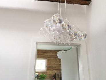 Például elképzeltem, milyen jól mutatna a loftos belmagasságú lépcsőfordulóban két buborékcsillár, csak az a kis probléma volt, hogy a szükséges méret darabja 3900 dollár. És nekem ugye kettő kell. Darabonként 1,2 millió - elképzelni sem tudom, ehhez mennyire kéne gazdagnak lenni.