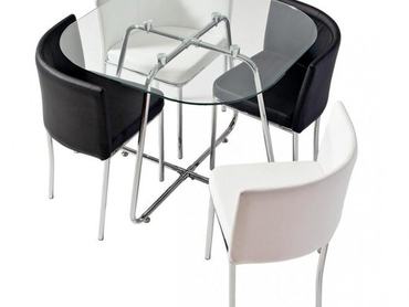 Erre jó megoldási lehetőséget kínál például a fenti fotón látható üvegasztalos – bőrszékes verzió a Kikától 50 000 forintos áron. Ha pedig nem kedveli a fém+üveg kombinációt, akkor a sokkal barátságosabb fa és szövet megoldást is megkapja ugyanennyiért, igaz, itt már webes rendeléssel kell élnie.