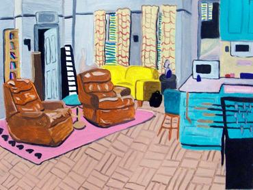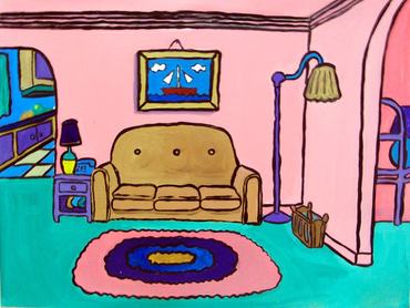 “A híres tévéfilmek berendezéseiben van valami különösen megnyugtató. Tizenévesen sok időt töltöttem ezekben a szobákban” – mondja a művész, akire a saját bevallása szerint a gépi nevetőhangok mellett mély benyomást tettek a sorozatok állandó díszletei és bútorai is.
