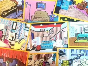 “Nem csoda, hogy a képeken látható díszletek és lakberendezései tárgyak mindegyike olyan furcsán ismerős, van amelyik azonnal felismerhető, és van néhány, amin gondolkozni kell kicsit, de ez teszi egyszerre játékossá, érdekessé és nosztalgikussá ezt a sorozatot. Ezek a kanapék, székek, szőnyegek és egyéb kiegészítők éppen olyan meghatározóak, mint maguk a karakterek”- magyarázza Ganjei, aki többek között a Twin Peaks, a Jóbarátok, a Wayne világa, a Seinfeld és a Simpsons család társalgóit dolgozta fel.