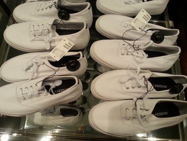 A Váci utcai Deichmannban először megijedtünk, hogy a férfiaknak csak alábbi papucsokkal készültek, de nem, egy egész emeletnyi cipő vár rájuk! Több olyan cipőt láttunk, ami erősen emlékeztetett valamelyik nagyobb márka termékeire, Vans, Adidas, Nike vonalon, de kaphatók valódi Puma, Fila, Nike és Adidas csukák is, mégpedig egész szépek, amiket jól lehet egy lazább utcai szettel kombinálni. Az árak itt sem magasak, egy sima vászoncipő 5 ezer forint körüli áron, egy márkás 15 ezer forint körüli áron vásárolható meg.