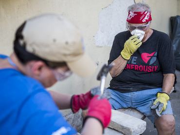 A Habitat Amerikában a legismertebb segítő szervezet, ott 1500 helyen működnek irodáik, de Magyarországon nagyon picik. Ezért is nehéz megérteni, hogy kik és miért jönnek ide a világ másik feléből, szabadidejüket és pénzüket áldozva, azzal a céllal, hogy ismeretlen családoknak segítsenek. Ottjártunkkor három építésvezető segítségével bontottak és építettek, a hangos nevetésekkel tarkított munka láthatóan gyorsan haladt, mintha egy összeszokott csapatról lenne szó. Pedig ez nincs így, a csapat tagjai nem ismerték egymást korábban, kivéve a két csapatvezetőt, akik már negyedszerre járnak Magyarországon.