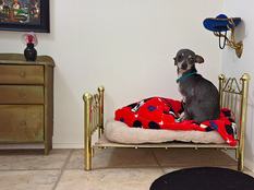 A nő tanárként dolgozott, majd nyugdíjas lett és ennek örömére úgy gondolta, hogy a lépcső alatti kis tárolóból mini hálószobát készít, ahova a család csivavája visszavonulhat aludni, vagy ha egy kis magányra vágyik. A szoba berendezéséhez a Harry Potterből merített ötletet és tényleg úgy is néz ki a lakosztály, mint egy rendes háló ággyal, komóddal és dekorációval és olvasólámpával. Mondjuk azért egy TV még simán elfért volna, hogy a kiskutya agárversenyt nézhessen éjjelente vagy az Animal Planetet. De mint a galériában is látszik, a kisállatot művészettel is ellátták, Cassius Marcellus Coolidge Pókerező kutyák című képének reprójával díszítették a szobáját. Dícséretes odafigyelés a részletekre, ennél jobban már csak néhány méretes, parkban sétálgató csirkecomb tetszhetne neki jobban.