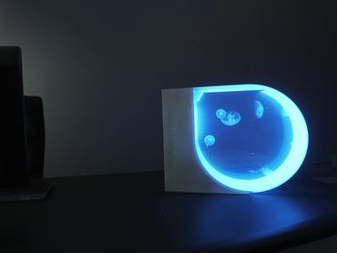 Az ő űbertrendi akváriumuk hosszas kutatás eredménye: felhasználóbarát, és könnyen fenntartható. A kompakt forma az óceánok áramlatait imitáló vízmozgató rendszert takar, és egyszerű, minimalista formavilágával nem mást helyez reflektorfénybe, mint a nem e Földről való medúzát.