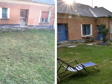 “Több mint húsz éve van egy házunk Monoszlón, ahol a nyarainkat töltjük és ahol állandóan vendégeket fogadtunk. Rokonok, barátok, ismerősök, mindig volt valaki, akit elszállásoltunk, így egy idő után kezdett megszűnni a személyes életterünk. A férjem ezért kitalálta, hogy megveszi a szomszédos kis parasztházat, hogy a vendégeink tőlünk függetlenül tudjanak jönni-menni. De az a szempont is mérvadó volt, hogy legalább mi dönthetjük el, ki lesz az új szomszédunk. Arról nem is beszélve, hogy egy igazi kihívás lesz saját kezűleg felújítani egy parasztházat, amiben egyikünknek sem volt még tapasztalata” - mesélte Sándor Fruzsina, aki eleinte nem lelkesedett férje ötletéért.