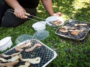 Serény Zsolt, a BP BARbq tulajdonosa, akinek személye tetovált séfként is ismert, korábban részletes útmutatót adott nekünk a grillezéshez. Akkor teljesen natúr húsokat húzott a nyársra, még csak sót sem tett rájuk. Szerinte ugyanis teljesen felesleges előre pácolni, ő inkább a sütés közben ízesítésben hisz. Tehát elkezdi sütni a húst, és kb. félkész állapotában keni meg egy fűszeres szósszal – így állítólag jobban benne maradnak az ízek.
