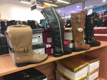 Túránkat az Asia Centerben kezdtük, ahol rögtön az első üzletben akcióba botlottunk, a 9000 forintos csizmák 6900 forintra voltak leárazva, de ha valaki szereti a rojtokat, 4500 forintért is vehet már jóárasított lábbelit a hidegebb hónapokra. A csizmák (és bakancsok) többsége egyébként 6000 és 10 000 forint között van, a trendekre érzékenyeknek például ajánljuk a gyöngyökkel díszített bokacsizmákat 6990 forintért, és annak is érdemes betérnie, aki szeret mindent, ami millennial pink árnyalatban pompázik, mert ilyen lábbelikkel tényleg tele van az üzletközpont.