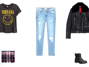 De akkor nézzük a szetteket, és azonnal egy hagyományos összeállítással kezdünk. Fesztiválszezonban persze a tornacipő és a famerkabát a tökéletes választás, de ősszel és télen ez kevés lesz, eljön a bélelt bőrdzseki és a motoros bakancs vagy csizma időszaka.