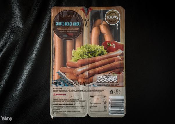 A harmadik helyen egyből három termék sorakozott fel, nem valami fényes, 2,42 pontos átlaggal. Elsőként jöjjön a Tesco juhbeles virslije, ami azon vesztett egy halom pontot, hogy pépes állaga a parizerhez tette hasonlatossá – abból is a rosszabbik, filléres fajtához, amelyet a gyártásnál rengeteg sóval ütnek fel, hogy ne érezd, mennyire rossz.