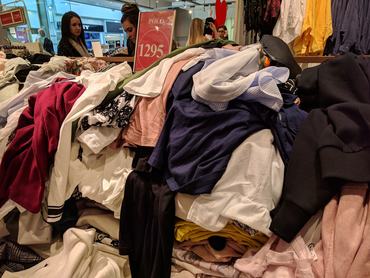 Amúgy rég nem jártam plázában, kábé még decemberben, úgyhogy elszoktam attól, hogy tömeg van és oltári kupleráj, és tényleg úgy kell egyes boltokban már pár órával nyitás után válogatni, mintha egy halom összehányt géprongyból szeretnék kihúzni pár jobb állapotút egy gyárudvaron. A legszélesebb kínálat leárazott holmikból egyébként úgy tűnt, a Zarában van, a H&M-ben is kitettek azért magukért, de a legtöbb üzletben az új kollekciós termékek már nagyobb helyet foglalnak, mint az előző kollekciók maradékai.