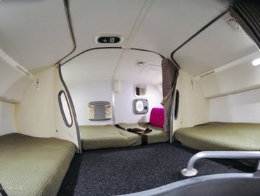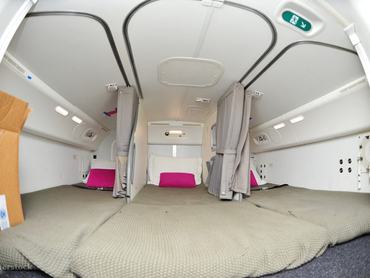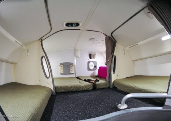 A Virgin Australia Boeing 777-es gépein például a gép farkában, az utastér feletti tetőtérben építettek ki egy nyolc fős, függönyökkel elválasztott pihenőszobát a legénységnek. Itt szintén szűkös a helyük, de azért segít, hogy átvészeljék az időeltolódást, amikor, mondjuk, átkelnek a Csendes-óceán felett. A pilóták valamivel szerencsésebb helyzetben vannak. Ők a gép elején kaptak egy kabint, ahol két ágy, két szék és szórakoztató eszközök szolgálják a kényelmüket.