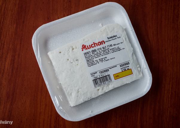 Kimérve lehet megvenni az Auchanban a fetát, ami határozottan tetszett a tesztelőknek. Görögországból jön, vagyis joggal viseli a feta nevet. Na, például ennél fontos lehet, hogy mikor hazaviszed, akkor megfelelően tárold, mert nem rakták semmilyen lébe, ezért bár a teszt napján vásároltuk, páran kicsit száraznak találták az eredetihez képest, a többség viszont nagyon szerette.