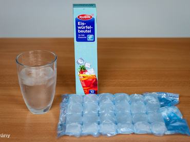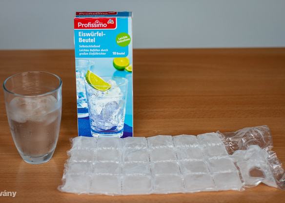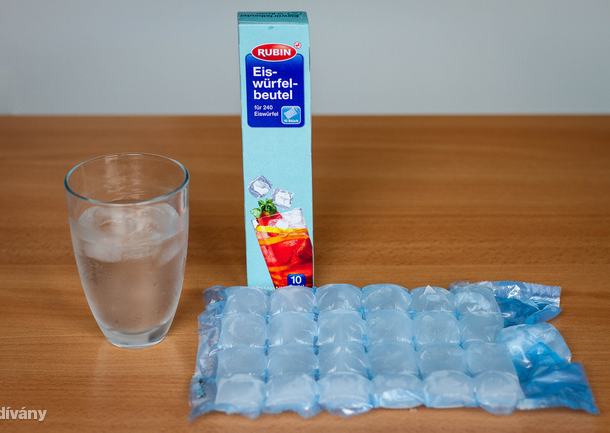 Egy sima nylon tasak, ami kockákra van osztva, és olyan a kialakítása, hogy nem kell folyik ki belőle a víz, akkor sem ha a feje tetejére állítjuk. Egyszerűen fel kell tölteni csapvízzel, majd be kell tenni a mélyhűtőbe simán fektetve.