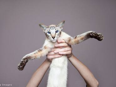 Mivel a cicád jóval kisebb nálad, ráadásul hajlamos mindenfélén berezelni, ami csúnya karmolásokat eredményezhet, mindenképpen gyengéden nyúlj hozzá. A legfontosabb teendőd, hogy alátámaszd a törzsét: legalább egy kézzel ragadd meg a mellkasa alatt, majd tartsd minél közelebb magadhoz, ügyelve rá, hogy ne a lábaira vagy ízületeire helyezd a nyomást. A másik kezed közben az első mancsai alá teheted, hogy még nagyobb biztonságban érezze magát.