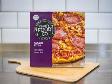 1. helyezett: Tesco Hearthy Food szalámis pizza – 3 pont (429 forint/300 g)