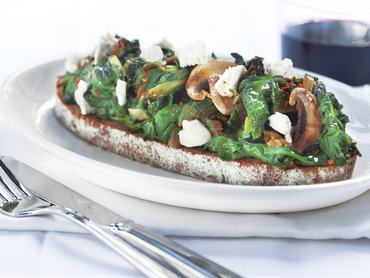 Egy adag rukkolával és friss koktélparadicsommal lesz igazán finom ez a szendvics, amivel semmi más dolgod nem lesz, csak a grillezett hagyma- és gombaszeleteket egy kissé összevágni és a sajtkrém tetejére halmozni. Ha van otthon parmezán, azzal sem érdemes spórolnod.