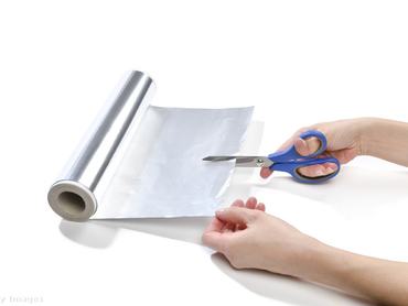 Az alufólia lecsiszolja és megtisztítja az olló pengéjét, így az jobban fog vágni.