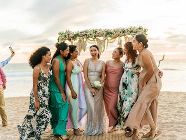 A túlragyogástól való tartózkodás igaz a flitterekre és a csillogásra is. Éppúgy, ahogy fehér viselettel sem szabad elvonnunk a figyelmet a menyasszonyról. Mindez persze a szabásra is vonatkozik, ne akarja egy hölgy sem túlragyogni a menyasszony fényét, ez az ő napja, nem illik nála szebb vagy nagyobb ruhában tündökölni. De ha már szabásról beszélünk, a brit esküvőszervező azt tanácsolja, ne válasszunk túl hosszú vagy bő ujjú felsőrészt, mert a vacsoránál, főleg egy svédasztalos fogadásnál nagyon praktikátlan lehet.