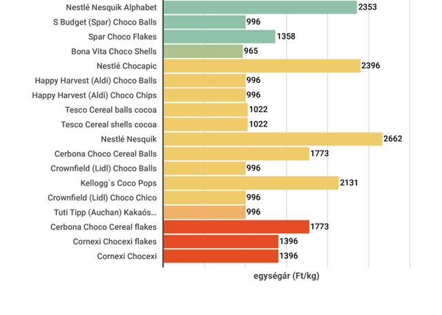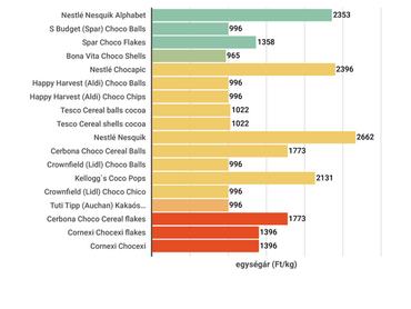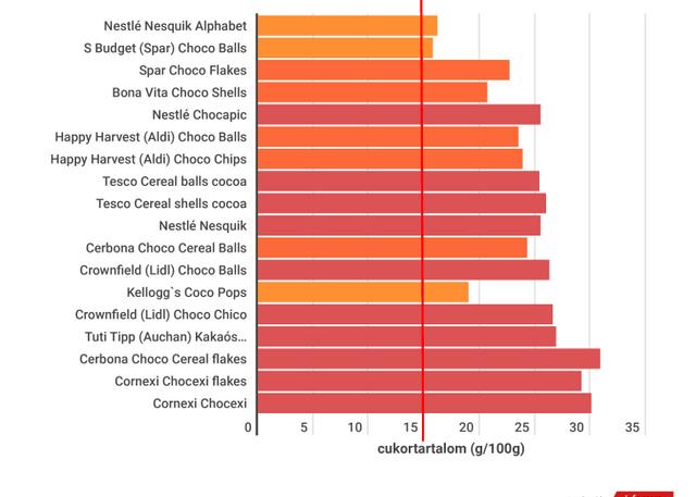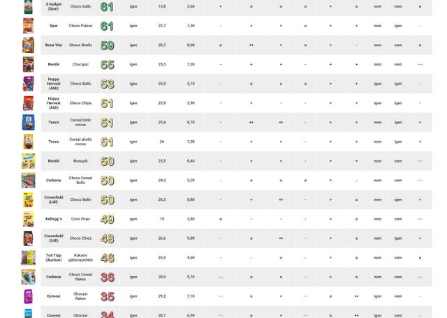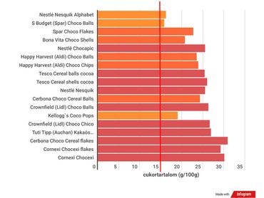 „A WHO azt is előírja, hogy a reggeli gabonapelyhek 100 grammban kevesebb mint 15 g cukrot tartalmazhatnak, amennyiben gyermekeknek szánt termékről van szó. Ennek egyetlen vizsgált termék sem tudott megfelelni” – tette hozzá az egyesület.