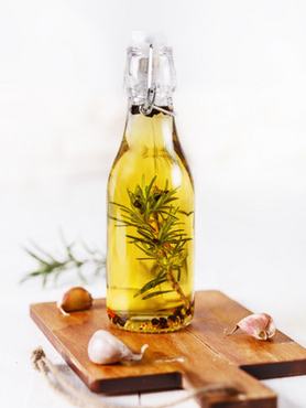 A fokhagymás olaj készítése jó módszer, hogy azonnal kéznél legyen egy olyan fokhagymás ízesítő, ami tartalmazza az értékes allicint. Nem mindig van időnk arra, hogy főzés közben pihentessük az összezúzott gerezdeket, és natúr husik ízesítésénél is jól jön, hogy csak az íze kerül a sültre, így nem égnek oda a fokhagymadarabok. Egy kisebb befőttesüvegbe tegyünk bele 8-10 gerezd zúzott fokhagymát, hagyjuk állni 10 percet, és öntsük fel 1 dl olajjal. Kicsit rázogassuk össze, és hűtőszekrényben tároljuk. Használhatunk napraforgó- vagy olívaolajat is, mindkettőben jól kioldódnak az íz- és hatóanyagok. A kész olajjal megkenhetjük a sült húsokat, lángost, pirítóst, használhatjuk salátaöntethez, süthetünk és főzhetünk vele bátran, a fokhagyma húsát pedig felhasználhatjuk pörköltalaphoz. Az olajba tehetünk a fokhagyma mellé más fűszernövényeket is, ígyigazi fűszerolaj készülhet, ami egy mutatósabb üvegben még ajándékként is megállja a helyét.