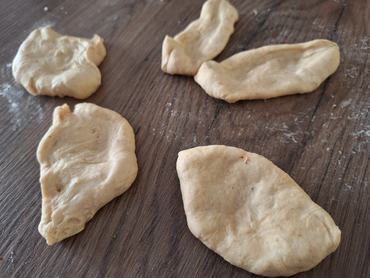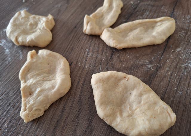 Egy meglehetősen ragacsos tésztát kaptam, amelynek alá is kellett lisztezni, hogy ne tapadjon folyamatosan a munkafelülethez, de már ekkor furcsa volt, hogy a fűszerkeverék adta húsos illat lengi be dagasztás közben a konyhát.