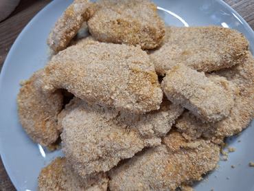 Miután kihűlt a tésztából búzahússá vedlett alapanyag, a szokásos módszerrel paníroztam, majd olajban kisütöttem, és jött a puding valódi próbája: négy éhes ovis és kisiskolás.