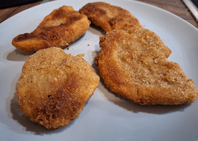 Az igazság az, hogy leginkább a nuggetsekhez hasonlóan ruganyos állaggal tudnám a rántott szejtánomat jellemezni. A hosszabb időt igénybe vevő, víz alatt dagasztós és utána csomózgatós elkészítési módszer szálasabb, csirkére jobban emlékeztető húspótlót eredményez az internetes hírek szerint, az enyém inkább volt valamiféle gyorséttermi verzió. Ennek dacára a gyerekek közt akadt, aki repetázott belőle, sőt, aggodalmasan figyelte, amikor én is megkóstoltam, majd jelezte, hogy ő másnap az iskolába is vinne belőle tízóraira. A férjem kommentárja szerint nagyon nem csirkehús jellegű, viszont megenné: finom.