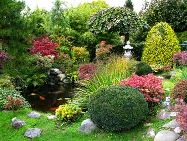 A keleti stílusú kertekbe jól illenek tavak, csobogók, melyek növényei nagyon változatosak