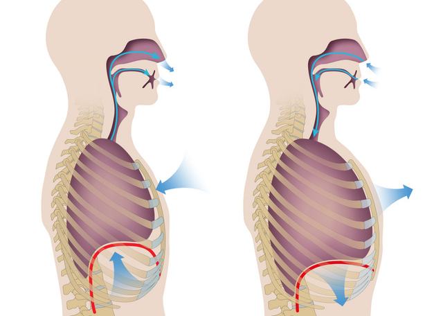 - Rekeszizom: A légzés legfontosabb résztvevője a rekeszizom. Hiába lenne akkora a tüdőnk, mint egy bálnának, ha nincs rekeszizmunk, nem tudnánk lélegezni. Belégzéskor lefelé mozdul, kilégzéskor pedig fölfelé mozog, megszűntetve a nyomást. Ezért kell a gyakorlatsort kilégzés után elvégezni, mert a hasi nyomás ilyenkor csökken, a rekeszizom felfelé mozdul.