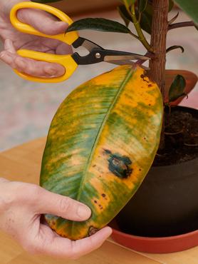 A napégett levelek idővel maguktól is leesnek, de ezt nem feltétlenül érdemes megvágni, mert ha látványosan megperzselődnek, már nem fognak helyrejönni, és a növény csak feleslegesen pazarolja rájuk az erőforrásait. Ha egy levélen több mint 50 százalékos mértékű károsodás látható, ne késlekedj tovább, vágd le.