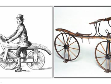 1817-ben a német Carl von Drais kísérletezni kezdett egy kétkerekű járművel, hogy enyhítse a lóhiány (az állatok etetését nem igazán engedhették meg maguknak az emberek az ínséges időkben) okozta súlyos közlekedési helyzetet. A modern kerékpár prototípusát, Drais kétkerekű járművét kezdetben „Dandy Horse”-nak vagy „Hobby Horse”-nak nevezték.