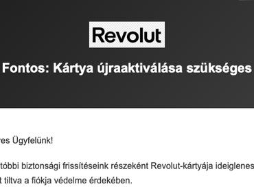 Csaló üzeneteket küldenek adathalászok a Revolut nevében, melyben újabb kártyaaktiválásra szólítanak fel. Ha belépsz az általuk létrehozott felületre, nemcsak az ottani számlád tartalmát üríthetik ki, hanem azon számlákhoz is hozzáférnek, melyet összekapcsoltál a fiókoddal.