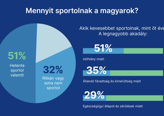 A magyarok 32 százaléka a felmérés szerint ritkán vagy soha nem végez sporttevékenységet, azok aránya, akik minimum hetente mozognak, 51 százalékos.
