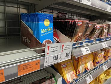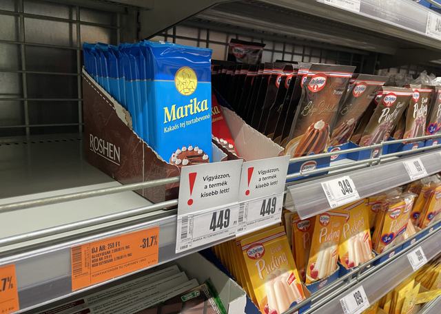 Felkiáltójellel jelölik a boltok, ha csökkent a méret