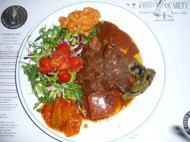 A fenti fotón látható, amit kihoztak nekem "goulasch" címén. Kiváló minőségű marhahúsból készült, remek salátával és savanyított pepperonékkal tálalták, de paprika egy gramm nem volt benne. Kinézetre még valamennyire emlékeztetett egy pörköltre, ízre egyáltalán nem.