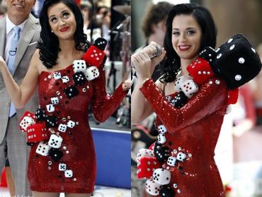 És végül van még valaki, aki manapság mindenkire hatással van, és ha az ember lát egy ilyen dobókockás jelmezt, nem tud nem arra gondolni, hogy minden bizonnyal Katy Perry is őt próbálta meg túllicitálni. Mármint Lady Gagát. Nem olyan, mintha az alábbi fellépőruhát az ő ruhatárából kérte volna kölcsön...?