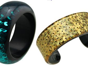 A flitteres karkötő halott ötlet, egy hét alatt tönkremenne, de ezek a műgyantába zárt lapok védve vannak. Nicholas King