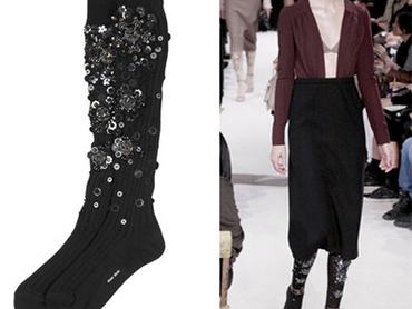 Egy kevéssé hordható, de cuki megoldás, bordás térzokni flitterekkel, otthon is elkészíthető. Miu Miu