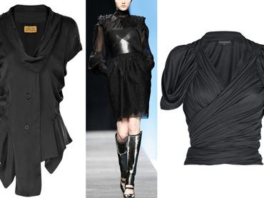 Aki gyárilag az, lapozzon. Neki kimondottan előnytelen ez a trend. Push-up függőkön se tudunk segíteni. A fodros, tekert, csavart, beejtett és ezeken átkötött blúz csak kicsi melleken mutat.