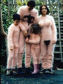 Végül nem szabad megfeledkeznünk az egész műfaj úttörőjéről sem, egy képről, amely az interneten csak Weirdest Family Photo Ever (A legfurcsább családi kép) címen fut, és egy klasszikus két szülő, két gyerekes felállású családot ábrázol, mindannyian Brüno jelmezéhez hasonló ruhában.